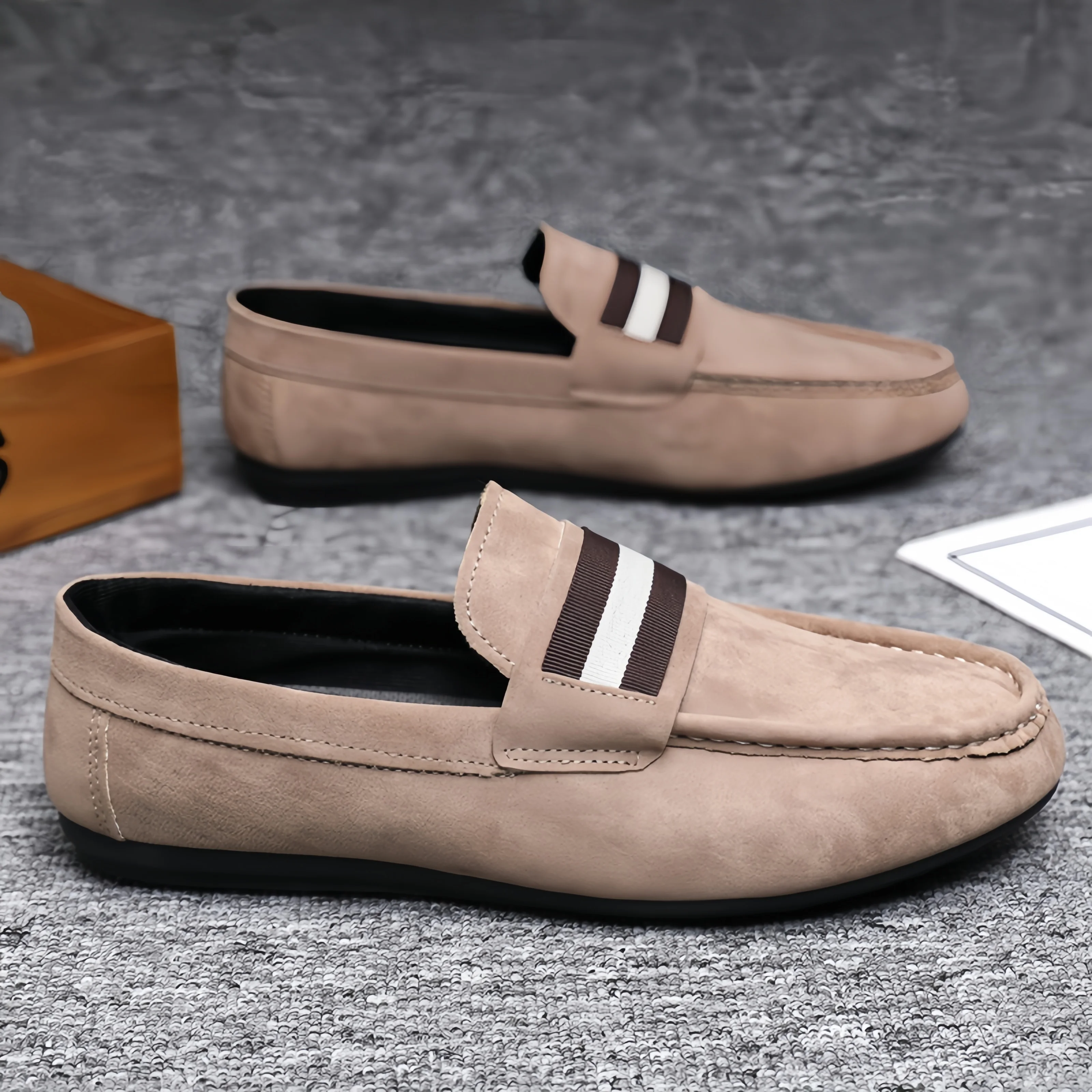 A Men's Soft-soled Bean Shoe, a Casual Leather Shoe for Men, and a Lazy Shoe